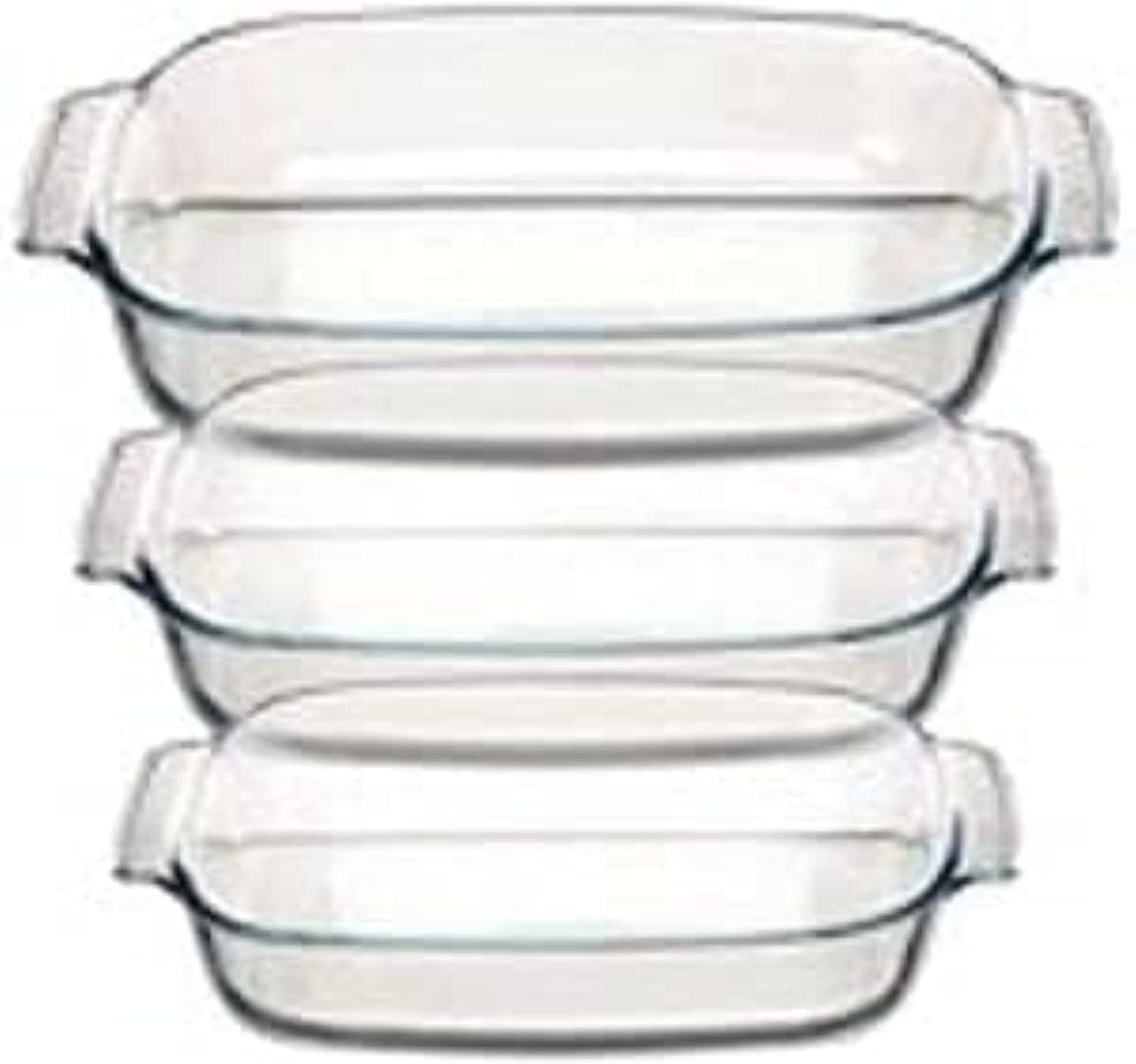 بايركس طقم صواني فرن بيضاوي زجاج 3 قطع ، شفاف