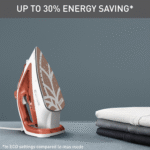 توفير الطاقة: يعمل الوضع الاقتصادي الذكي لهذه المكواة على ضبط إخراج البخار للحصول على أداء كي بنسبة 100% باستخدام طاقة أقل بنسبة تصل إلى 30%. مثالية للأشياء الحساسة أو عندما يكون لديك القليل من التجاعيد لتنعيمها.