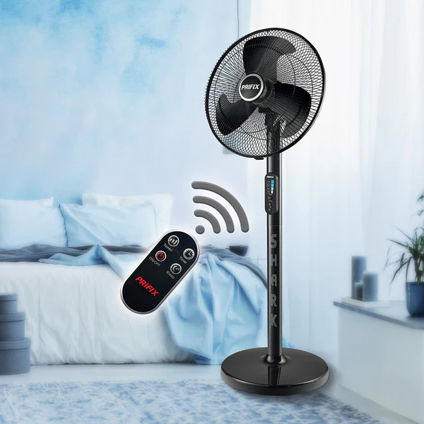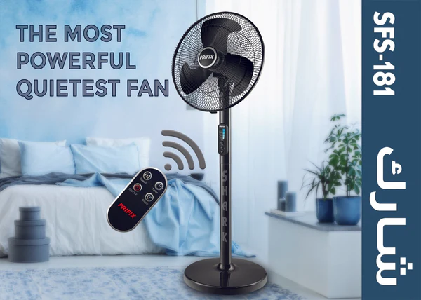 مروحة عمودية بريفيكس شارك 18 بوصة — محرك قوي | تشغيل صامت | 3 سرعات | مؤقت 8 ساعات | ريموت كنترول | وضع السكون | 220 فولت / 50 هرتز