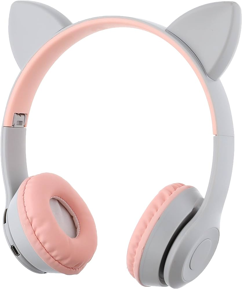 سماعة رأس لاسلكية p47 كات، بشكل اذن قطة بالبلوتوث 5.0، رأس للاطفال، رأس ليد بلوتوث فوق الاذن للاطفال والكبار (لبني)